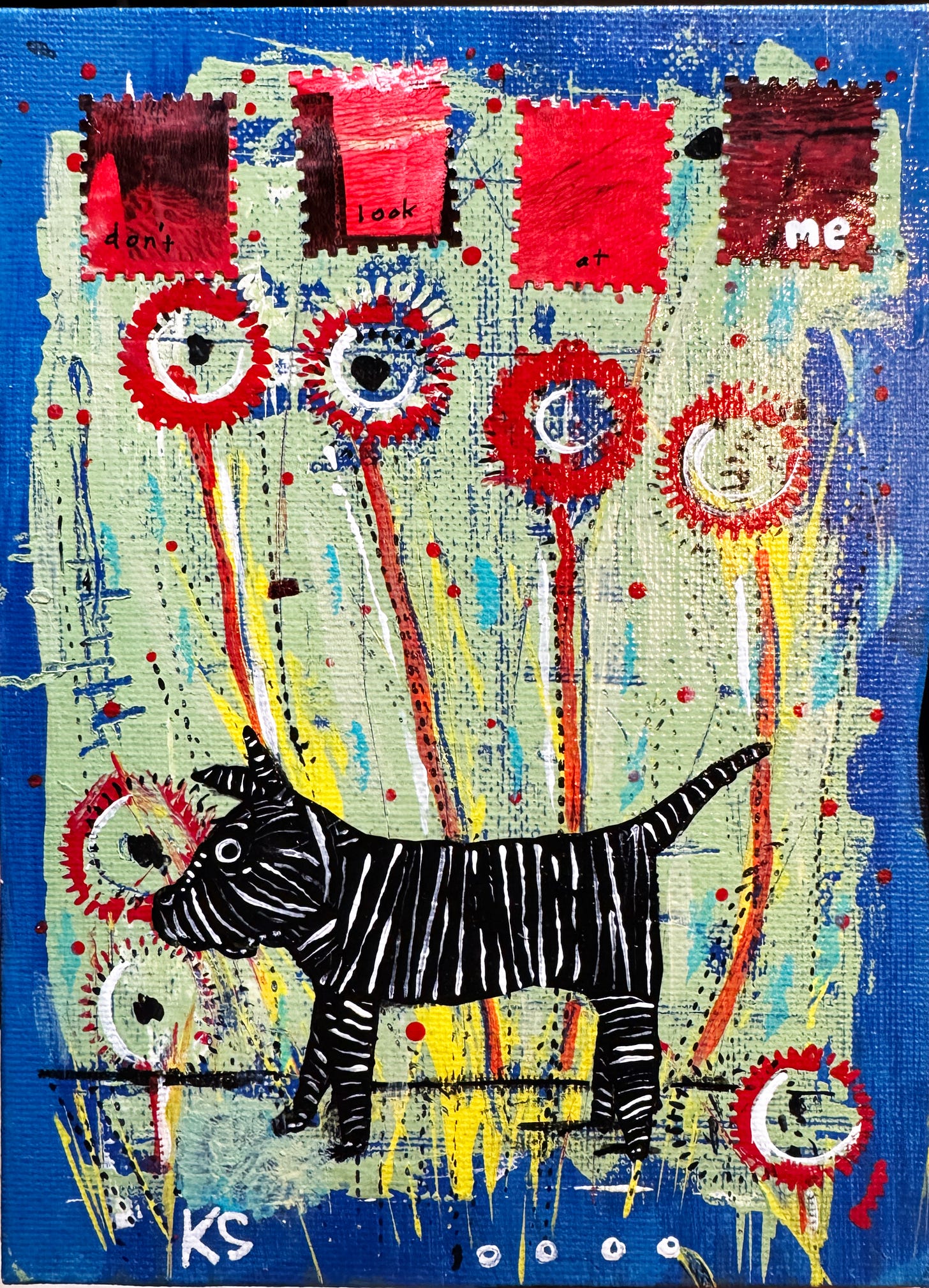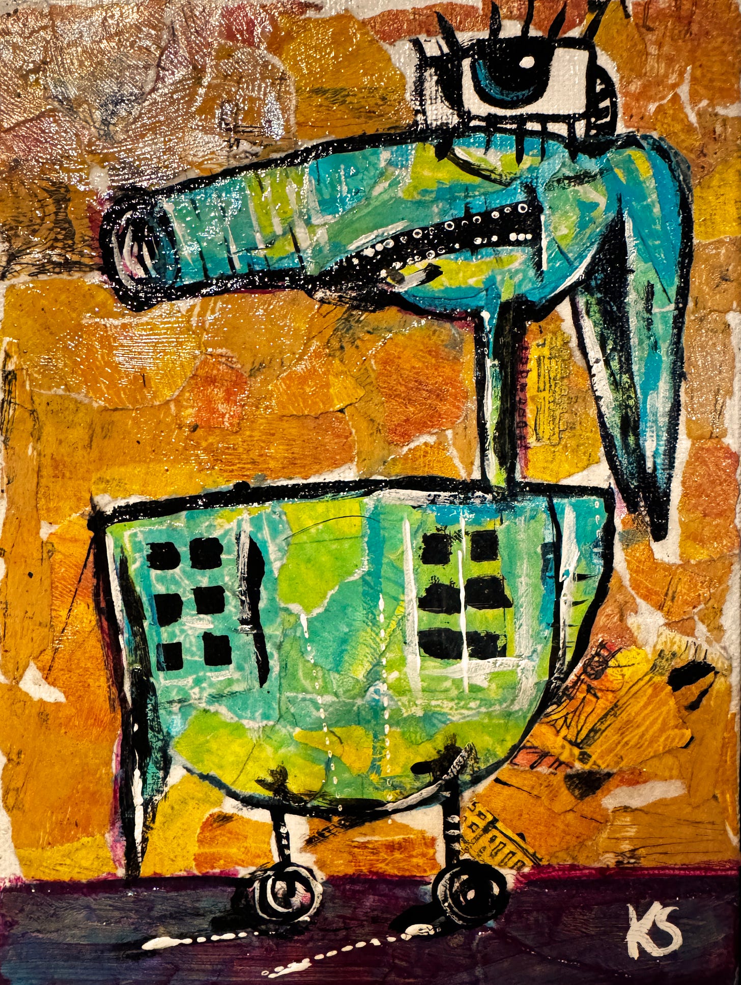 I recently found a small box holding about a dozen of 5×7-sized older paintings that I never finished. Most of them were done using acrylic paint and pen on canvas board and most of them weren’t good.